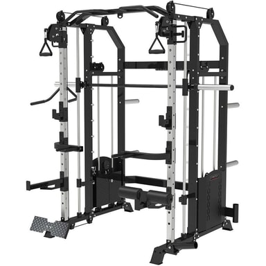 Gymstick Multi Smith PRO20.0 er en ekstremt omfattende treningsstasjon for hjemmebruk og semi-kommersielle fasiliteter. Stasjonen kombinerer en smith-maskin, et knebøystativ og en kabelstasjon i ett.Les mer om produktet