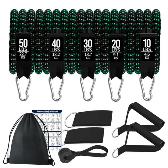 Helkroppstrening: Dette motstandsbåndsettet med 11 deler er designet for å gi en helkroppstrening som trener ulike muskelgrupper. Enten du fokuserer på bryst, rygg, armer, ben eller kjernemuskulatur, tilbyr disse båndene allsidige motstandsnivåer som passer dine treningsmål. Perfekt for både nybegynnere og avanserte brukere, lar dette settet deg utføre et bredt spekter av øvelser fra komforten av ditt eget hjem eller mens du er på reise.