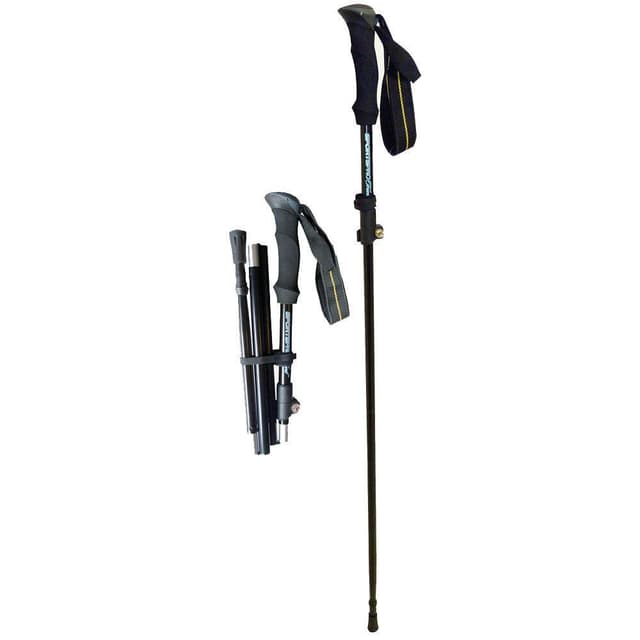 Sammenleggbare reisestaver i 4 seksjoner. Når de er demonterte, er de bare 35 cm lange og passer i en kabinveske. De er ideelle å ta med seg på turen, og øker stoffskiftet med omtrent 40% sammenlignet med en vanlig tur. Staver har justerbare lengder, ergonomisk utformede håndtak, polstrede håndleddsstropper, spisser av hardmetall og føtter av naturgummi. Ikke fjærende. Leveres parvis. Spesifikasjoner Lengde: Sammenleggbar, 35 cm-125 cm 4 seksjoner, justerbar lengde Gummiføtter laget av naturgummi Spiss: Hardmetall Aksel: Aluminium Vekt: 590 g/par Grep: Polstret håndleddsstropp