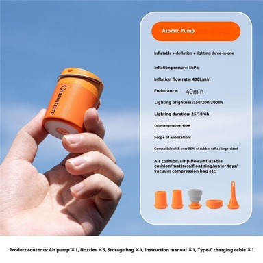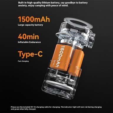 QUNATURE Mini Elektrisk Luftpumpe Magnetisk Camping Hengelampe Svømmering Luftmadrassinflator - Oransje