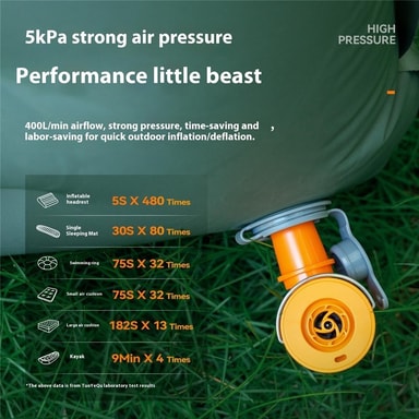 【Kraftig Ytelse】Med 5 kPa lufttrykk og 400 l/min luftstrøm, blåser og tømmer denne mini elektriske pumpen raskt utendørsutstyr, noe som sparer tid og krefter.