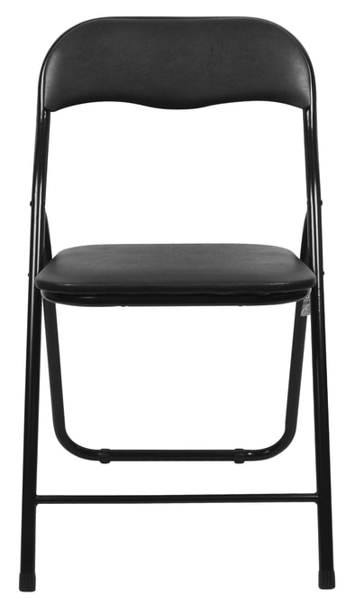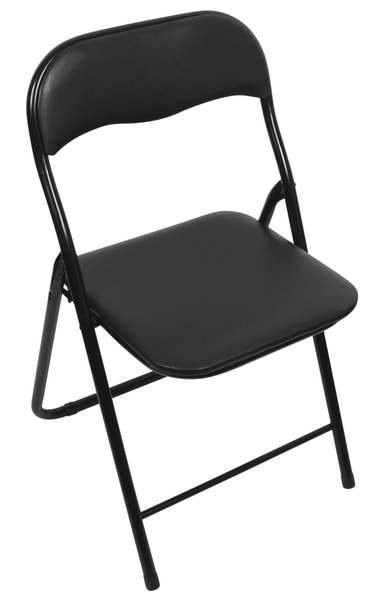 Når stolen ikke brukes, kan det lett klappes sammen og settes vekk slik at den ikke fyller for mye Størrelse (oppslått): 36 x 38 x 78 cm Rørdiameter: 0,8 mm Materiale: metall med polstret PU-skum-sete og rygglene (1,2 cm tykkelse). Overflate: pulverlakkert. Farge: Svart