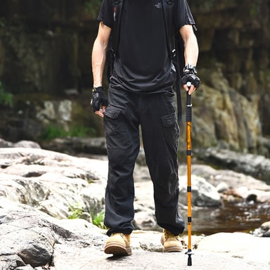 Mångsidig justering: Anpassa dig enkelt till förändrade terrängförhållanden med hjälp av den justerbara höjdfunktionen. Den teleskopiska designen gör att du kan anpassa stavens längd efter din längd och de specifika förhållandena för din vandring. Förkorta den för uppförsbackar, förläng den för nedförsbackar eller justera den för ojämna ytor. Denna mångsidighet gör vår vandringsstav idealisk för ett brett utbud av utomhusaktiviteter, från lugna promenader till utmanande bergsexpeditioner.