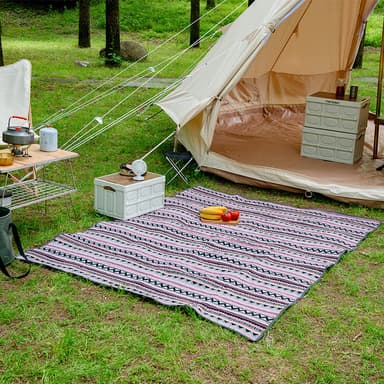 Romslig for familieutflukter: Piknikteppet vårt har komfortabel plass til 3-5 voksne, noe som gjør det ideelt for familiepiknik, sammenkomster i parken og turer til stranden. Spre dere ut og slapp av med god plass til alle.