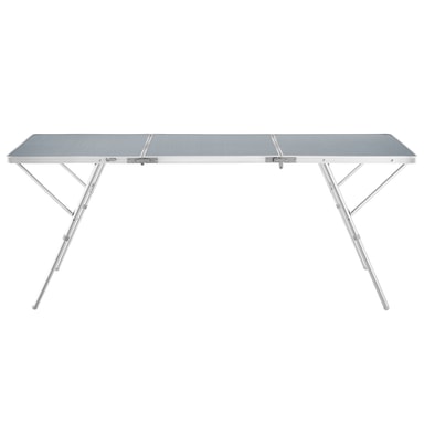 XXL sammenleggbart bord fra tectake er en perfekt følgesvenn for alle utendørseventyr. Campingbordkombinasjonen av en aluminiumsramme og belagte MDF-bordplater, som kan låses sikkert med solide hengsler, gjør hagemøblene absolutt værbestandige, robuste og enkle å vedlikeholde. Den er svært stabil takket være de gulvvennlige, sklisikre og høydejusterbare plastføttene, selv på ujevnt terreng. Med det praktiske bærehåndtaket kan det ultralette bordet enkelt tas med hvor som helst, og har plass til opptil 6 stoler, ideelt for camping eller på en festival med en større gruppe. Enten for bruk i hagen din hjemme, eller på farten, er dette praktiske sammenleggbare bordet fra tectake den ideelle løsningen.