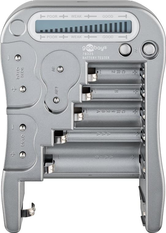 egnet for AAA (Micro), AA (Mignon), C (Baby), D (Mono), 9V Block, N (Lady), CR 2, CR123A, CR-P2, CR-V3, 2CR5