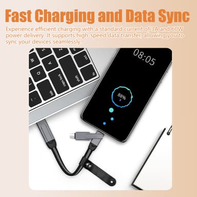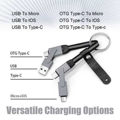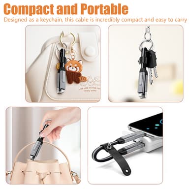 Kompakt og bærbar: Designet som en nøkkelring, er denne kabelen utrolig kompakt og lett å bære. Den tar minimalt med plass i lommen eller vesken, og sikrer at du alltid har en lade- og dataoverføringsløsning for hånden.