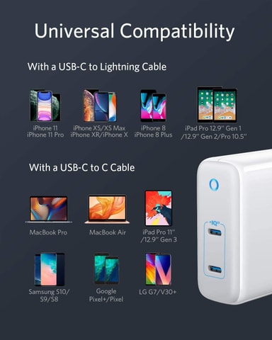 Anker PowerPort III 2-Port 60W USB-C lader (hvit)