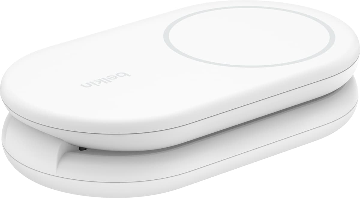 Belkin BoostCharge 2-i-1 15W Qi2 magnetisk lader (hvit)