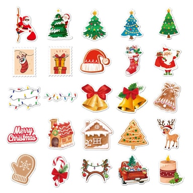 Festlige julemotiver: Hev julestemningen med disse 50 unike juleklistremerkene. Med et bredt utvalg av design, inkludert julenissen, reinsdyr, juletrær, ornamenter og festlige godbiter, er disse klistremerkene perfekte for å legge til et snev av juleglede til ethvert element. Ideell for å dekorere bærbare datamaskiner, vannflasker og gaveinnpakninger, bringer disse juleklistremerkene gleden av sesongen til hverdagen din. De livlige fargene og detaljerte illustrasjonene fanger essensen av julen, noe som gjør dem til et herlig tillegg til dine festlige dekorasjoner. Disse klistremerkene er perfekte for å skape en gledelig og festlig atmosfære uansett hvor du går.