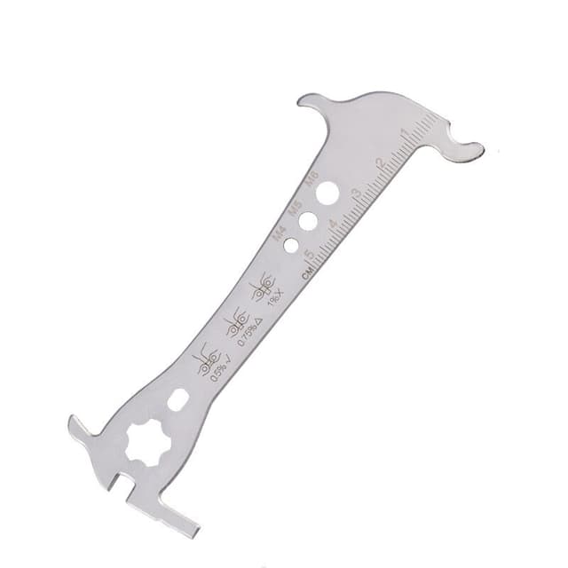 Denne kjedekontrollen er laget av høykvalitets rustfritt stålmateriale, holdbar med nøyaktig indikasjon. Den kan måle graden av kjedeslitasje, også for måling av demontering og montering av muttere, ventilkjerner, etc.
