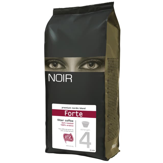 Noir Forte 100 % kvernet arabicakaffe har en rik, sjokoladeaktig aroma, med en ettersmak av vanilje. Kaffen er UTZ-sertifisert og passer ypperlig hvis du vil ha en espresso, men innfrir også alle smakskrav om du er fysen på en mer melkebasert kaffe.Les mer om produktet