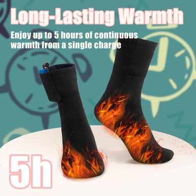 Langvarig varme: Nyt opptil 5 timers kontinuerlig varme fra en enkelt lading, noe som gjør disse sokkene perfekte for lengre utendørsaktiviteter i kaldt vær.