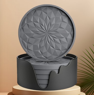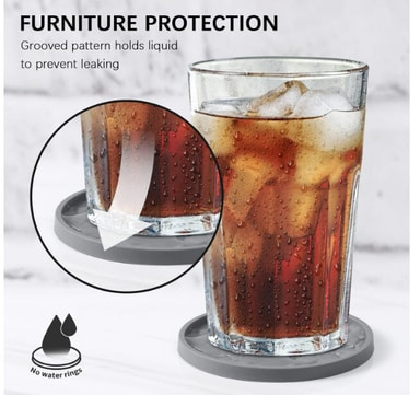 Sklisikker og stabil: Den sklisikre overflaten på brikkene sikrer at drikkene dine holder seg sikkert på plass, og forhindrer søl og ulykker. Brikkene har også en hevet kant for å holde på kondens eller drypp.