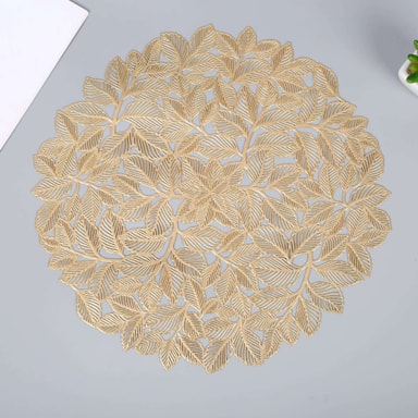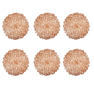 Sett med 6 spisebrikker med elegant bladmønster Gull