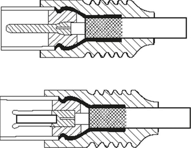 Tilkobling, kontaktmateriale: gull (24 kt)