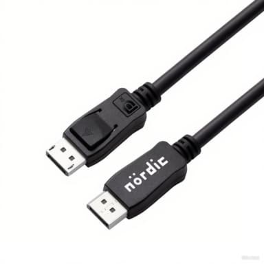NÖRDIC Displayport-kabel av høy kvalitet for å koble en videokilde med Displayport-utgang til en monitor, TV eller projektor med Displayport-inngang. Kabelen oppfyller alle kravene i Displayport 1.4-standarden og er laget for å levere stabilt og høyoppløst videosignal. Denne modellen har samme spesifikasjoner som DP-2xx-serien, men bruker PVC-kabel og PVC-kontakter i stedet for nylon og aluminium. Kontakten har også låsemekanisme for sikker tilkobling.