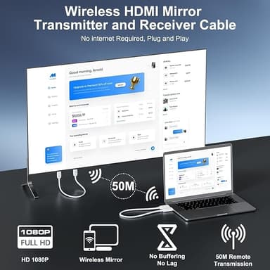 Denne trådløse HDMI-forlengeren med sender og mottaker gjør det enkelt å speile eller utvide skjermen din – helt uten apper, Bluetooth eller Wi-Fi. Koble til via plug-and-play, trykk på knappen i 5 sekunder og vent noen sekunder på tilkobling.Les mer om produktet