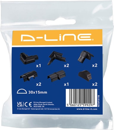 Oppgrader din 30x15 mm kabelkanal med D-LINE adaptersett. Pakken med 10 deler sikrer ryddige kanter og skjøter, og gir kabelføringene dine et polert og helhetlig utseende.Les mer om produktet