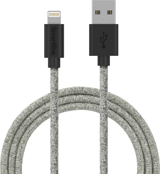 • Smartline USB-A til Lightning flettet kabel 2 m (grå)