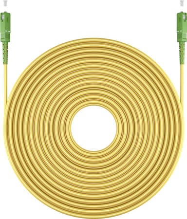 som en patchkabel danner den forbindelsen mellom husets overføringspunkt og det innendørs fiberoptiske modemet (ONT)