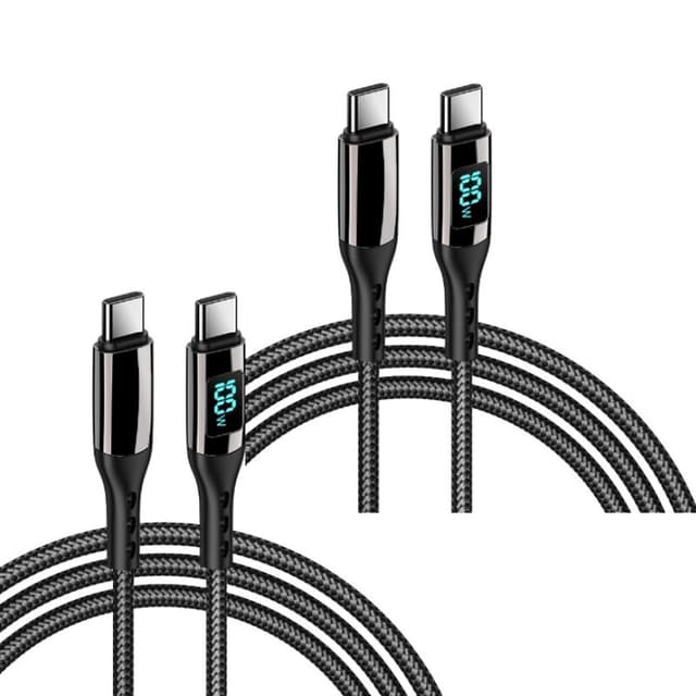• 2 pakke PD100W flettet datakabel Type-C til Type-C digital skjerm Sort 2m