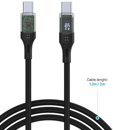 Fast 100 W USB-C ladekabel på 1,2 m gir rask lading med Power Delivery 3.0, gjennomsiktige kontakter med LED-visning, slitesterk tekstilflette og effektiv dataoverføring på 480 Mbps, komplett med kabelorganisator og trekkstropp.Les mer om produktet