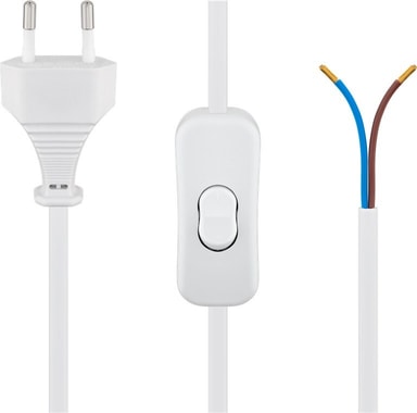 Kabel med europlugg for montering - med bryter, 1,5 m, hvit