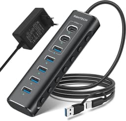 NÖRDIC GEN 3.2 USB-C og USB-A drevet Hubb 7-porter 3x10Gbps 4x5Gbps 1m kabel individuell bryter