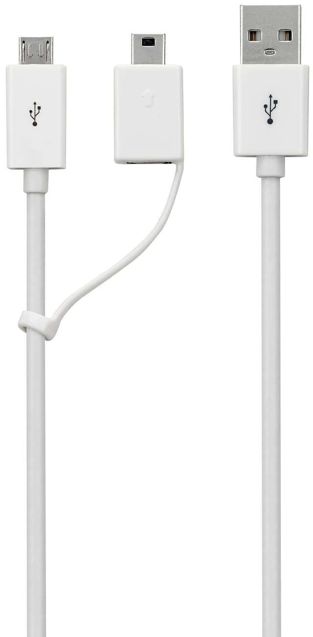 Denne hvite, 1.8 meter lange USb-kabelen med adapter lar deg lade og koble til dine mini- og micro-USB-enheter som eksempelvis smarttelefon, nettbrett, kamera eller kortleser.Les mer om produktet