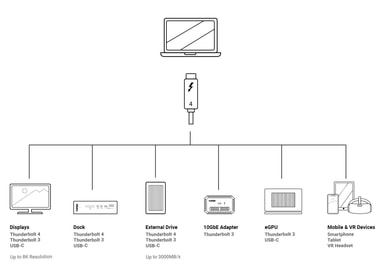 Thunderbolt 4 opptil 40 Gbps