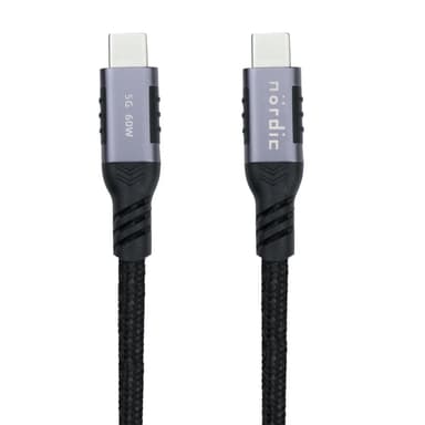 NÖRDIC 2m USB3.2 Gen1 USB-C til C nylonflettet kabel hurtiglading 3A 5Gbps Strømforsyning PD 60WLes mer om produktet