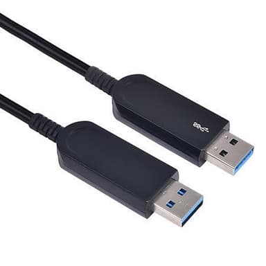 Aktive optiske kabler krever ikke en ekstern strømkilde for å konvertere og overføre elektriske signaler som optiske signaler og gir mange fordeler i forhold til konvensjonelle kobberforbindelser. De er mye lettere og mer fleksible enn kobber for applikasjoner med høy båndbredde, har en lengre overføringsavstand og ingen mottakelighet for elektromagnetisk interferens (EMI). Fiberkabelen har de samme standard USB A-kontaktene og dette betyr at du kan koble den som en vanlig USB A-kabel til din PC eller andre enheter. For å oppfylle visse spesifikasjoner er kabelen en hybrid av OM3 Multimode 4-leder fiber og 7-leder kobberkabel.