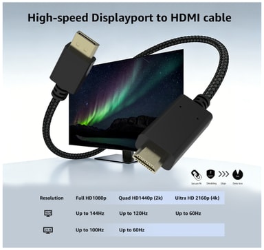 • Sandstrøm DisplayPort til HDMI 1.4 flettet kabel (1m)