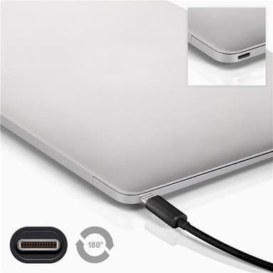 USB-C™-kontakt for å unngå forveksling med andre sider (180° roterbar)