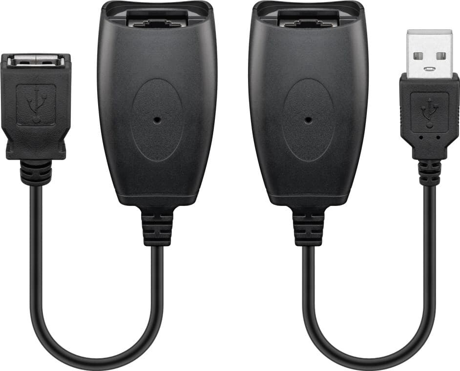 Overfører opptil 40 m via CAT-kabel (CAT 5, CAT 5e, CAT 6) og muliggjør dermed en betydelig større avstand enn via en passiv USB-kabel med maksimalt 5 m