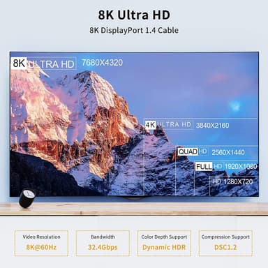 NÖRDIC DPDP-N2011 vinklet videokabel med høy kvalitet for å kunne koble en enhet med Displayport-utgang til en annen enhet 1m svart. Kabelen oppfyller alle kravene til Displayport 1.4-standarden.Teknisk informasjon: