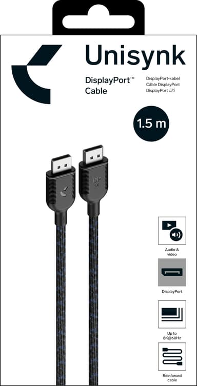 Unisynk DisplayPort 8K 10478 kabel (1,5 m) leverer fantastisk grafikk i opptil 8K-oppløsning ved 60 Hz og 4K ved 240 Hz, noe som gjør den til et perfekt valg for spilloppsettet ditt. Den støtter daisy-chaining og er PVC-fri.Les mer om produktet