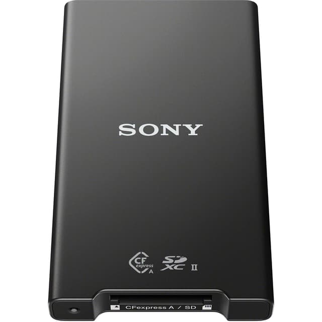 Sony CFexpress Type A. CFexpress-kortleser MRW-G2, er optimalisert for CFexpress-type A-minnekort fra Sony og kan utnytte potensialet fullt ut. Leseren er også kompatibel med SD - kort.