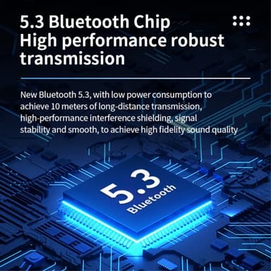 5.3 Bluetooth-brikke robust overføring med høy ytelse: Ny Bluetooth 5.3, med lavt strømforbruk for å oppnå 10m langdistanseoverføring, høyytelses interferensskjerming, signalstabilitet og glatthet, for å oppnå lydkvalitet med høy kvalitet
