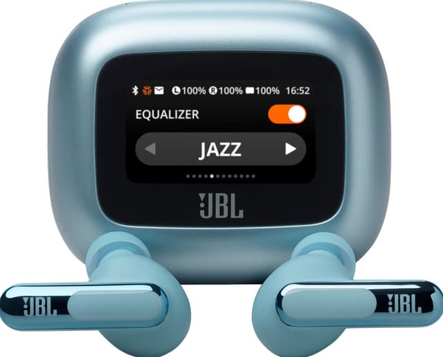 Last ned JBL Headphones-appen, og itlpass innstillinger, Adaptive Noise Cancelling, og mer. Du kan også bruke det smarte ladeetuiet med et display på 1,45" for å administrere hodetelefonene uten behov for å bruke smart-appen.