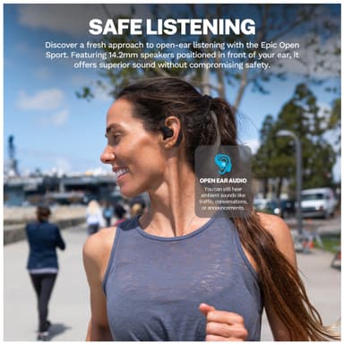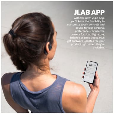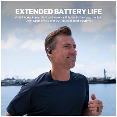 JLab Epic Open Sport helt trådløse in-ear hodetelefoner leverer god lyd og trygg lytting. Med 30 timers batteritid, tre lydmoduser, IP55 og førsteklasses lyd er disse hodetelefonene ideelle for både daglige aktiviteter og intense treningsøkter.Les mer om produktet