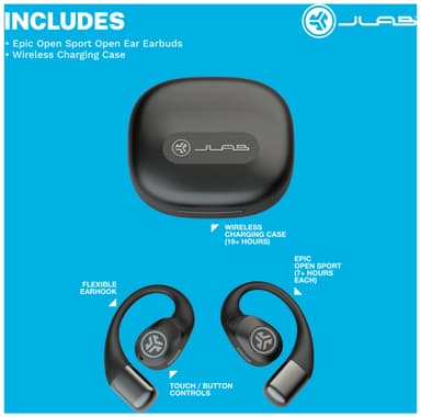JLab Epic Open Sport helt trådløse in-ear hodetelefoner (sort)