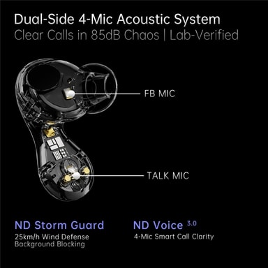 【Avansert støydemping】Utstyrt med fire mikrofoner for forbedret støydemping, noe som sikrer krystallklare samtaler selv i støyende omgivelser.