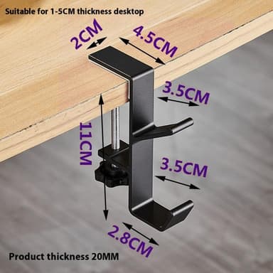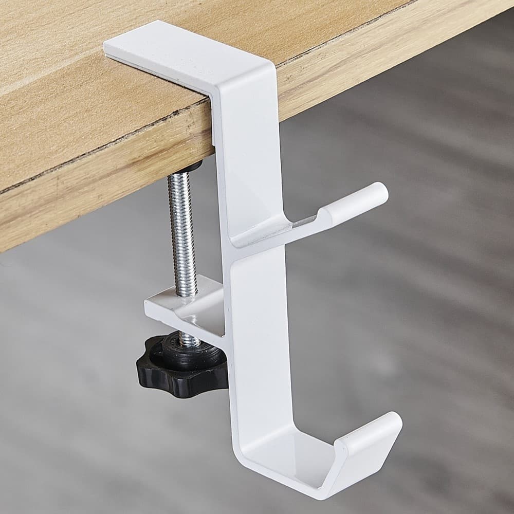 • Skrivebord Edge Hook Ryggsekk Veske Hodetelefonhenger Under Bord Oppbevaring - Hvit