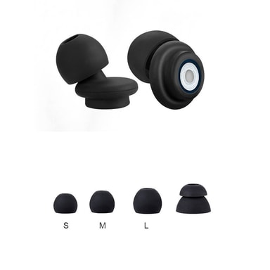Støyreduserende ørepropper med filter i svart og hvit silikon. Perfekt for søvn, svømming og støyreduksjon. Gjenbrukbare og vanntette for optimal komfort og beskyttelse.Les mer om produktet