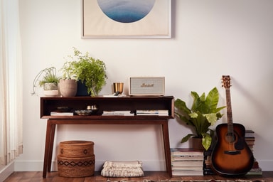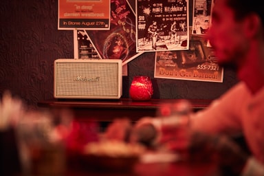 Multiroom: Mashall Stanmore er utstyrt med multiroom-teknologi som forener alle Marshall-produktene dine i ett trådløst system. Spill samme låt i alle rommene eller ulike sanger i hvert rom.