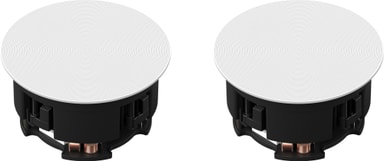 Sonos innfelt høyttalersett for tak gir personlig lyd av høy kvalitet med høy-eksursjon svingbar basshøyttaler og én-tommer diskanthøyttaler for fyldig, klar lyd, perfekt for hjemmekinoanleggLes mer om produktet