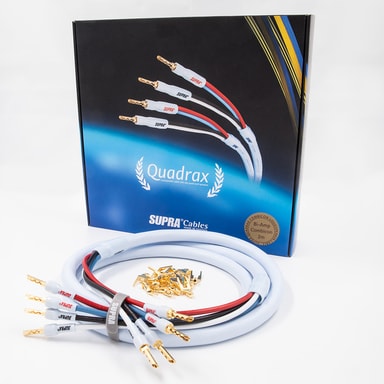 Quadrax bi-amp er utviklet for kraftige forsterkere og høyttalere av høy klasse. Lyden beskrives som energisk og realistisk – med en uanstrengt musikalitet og en dynamikk som får musikken til å puste. Supra holder seg tro mot sin filosofi: ingenting legges til, ingenting trekkes fra – bare ren, ærlig lydgjengivelse.