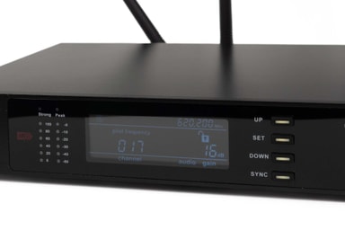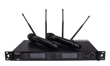 Profesjonell UHF trådløs mikrofon med 200 valgbare UHF-frekvenser, 4 antenner, SMT-kretsdiversitet, IR-skanning av frekvenser og en maksimal rekkevidde på opptil 200 meter – ideell for sceneshow og opptredener.